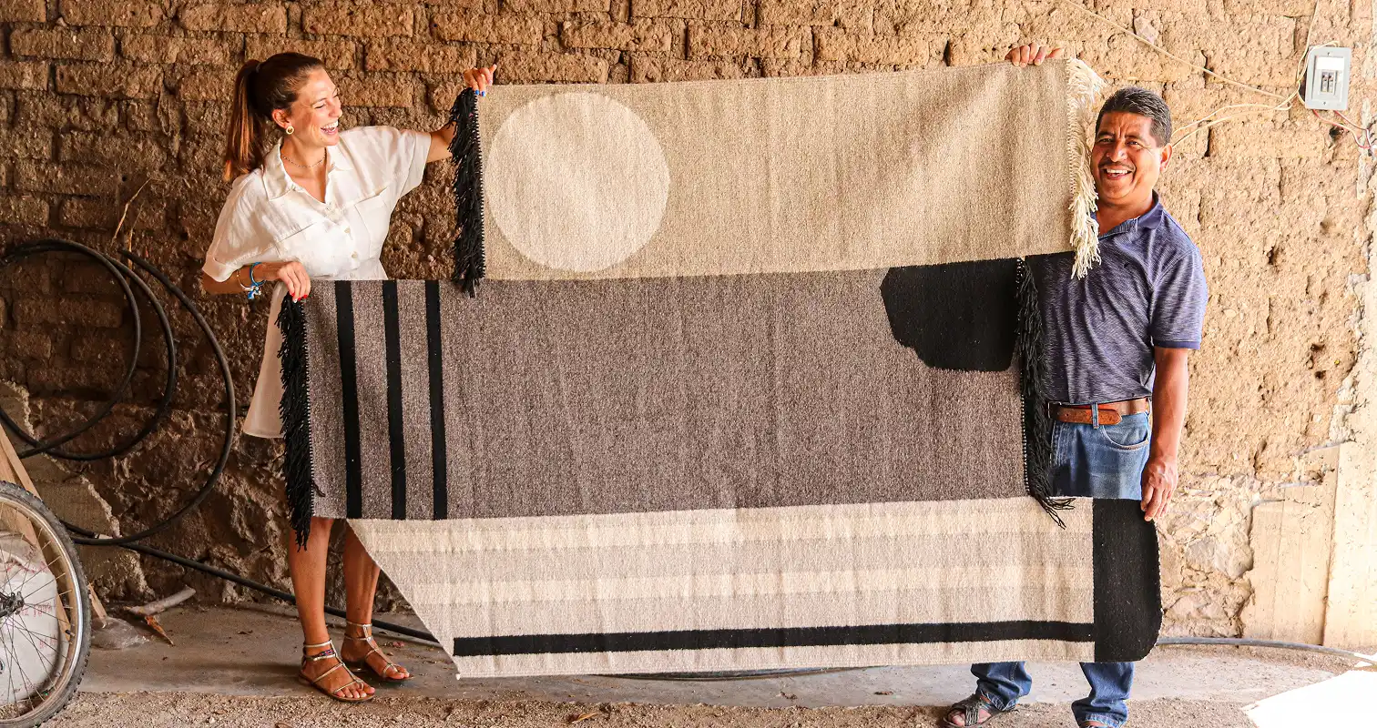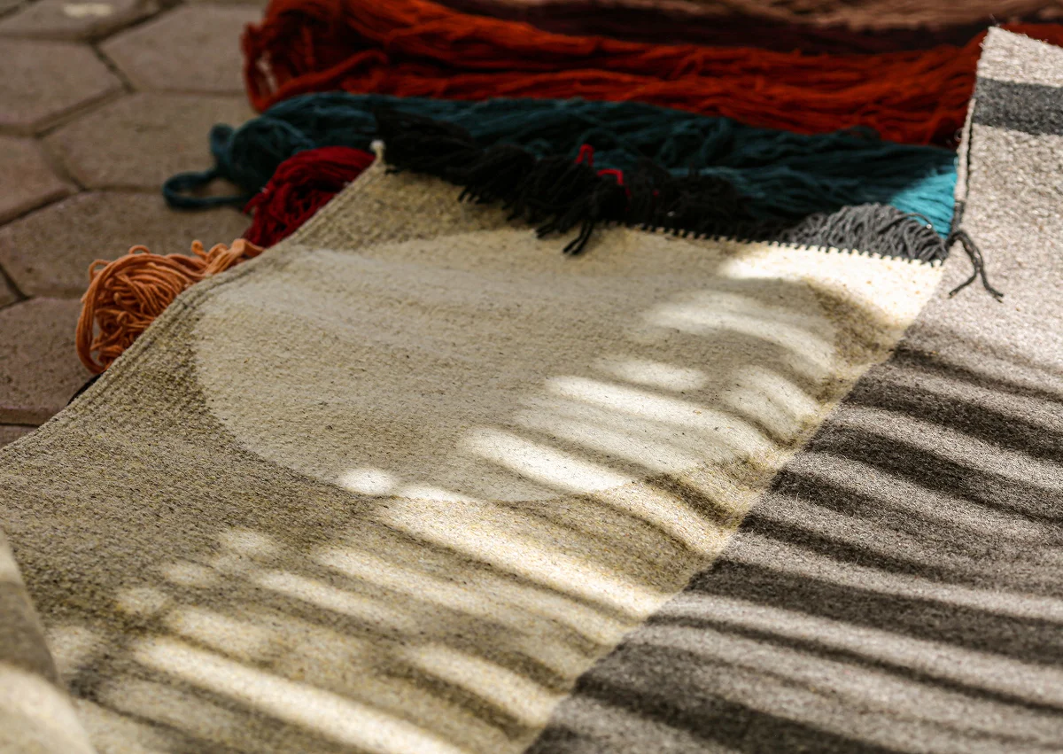 During the time I was living in Mexico, I discovered a small village in Oaxaca where a family of artisans preserves ancient weaving techniques. I immediately fell in love with their craft, and since then I have begun collaborating with them to create custom-made rugs for my clients, designed to reflect both my style and the specific requirements of each space. All rugs are entirely handcrafted using 100% natural materials, including wool and dyes derived from plants and minerals, combining local artisanal tradition with contemporary design. I continue to maintain a direct and ongoing relationship with this family of artisans, ensuring that each piece is unique, meticulously crafted, and perfectly tailored to the project.