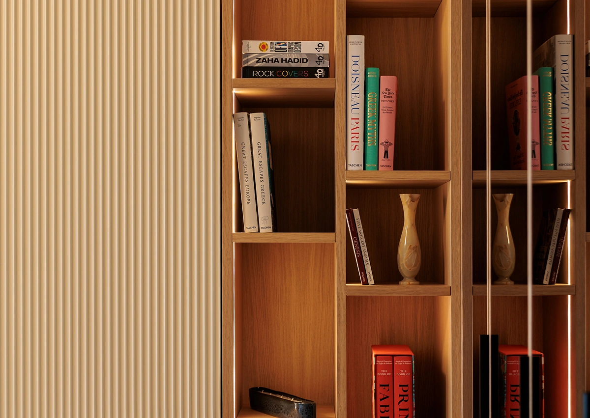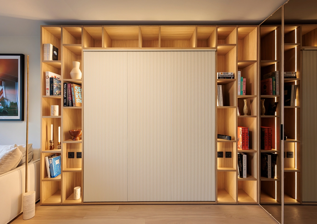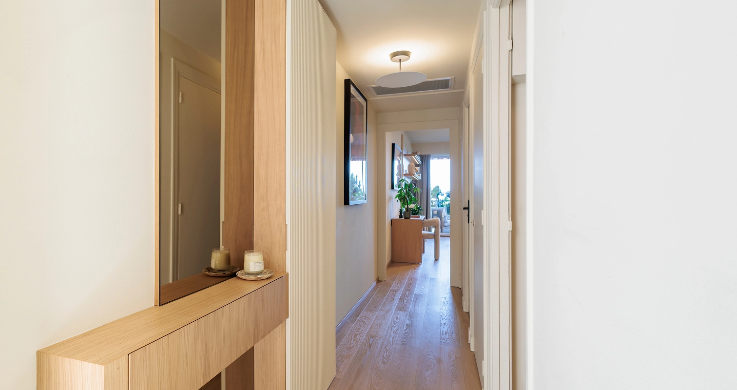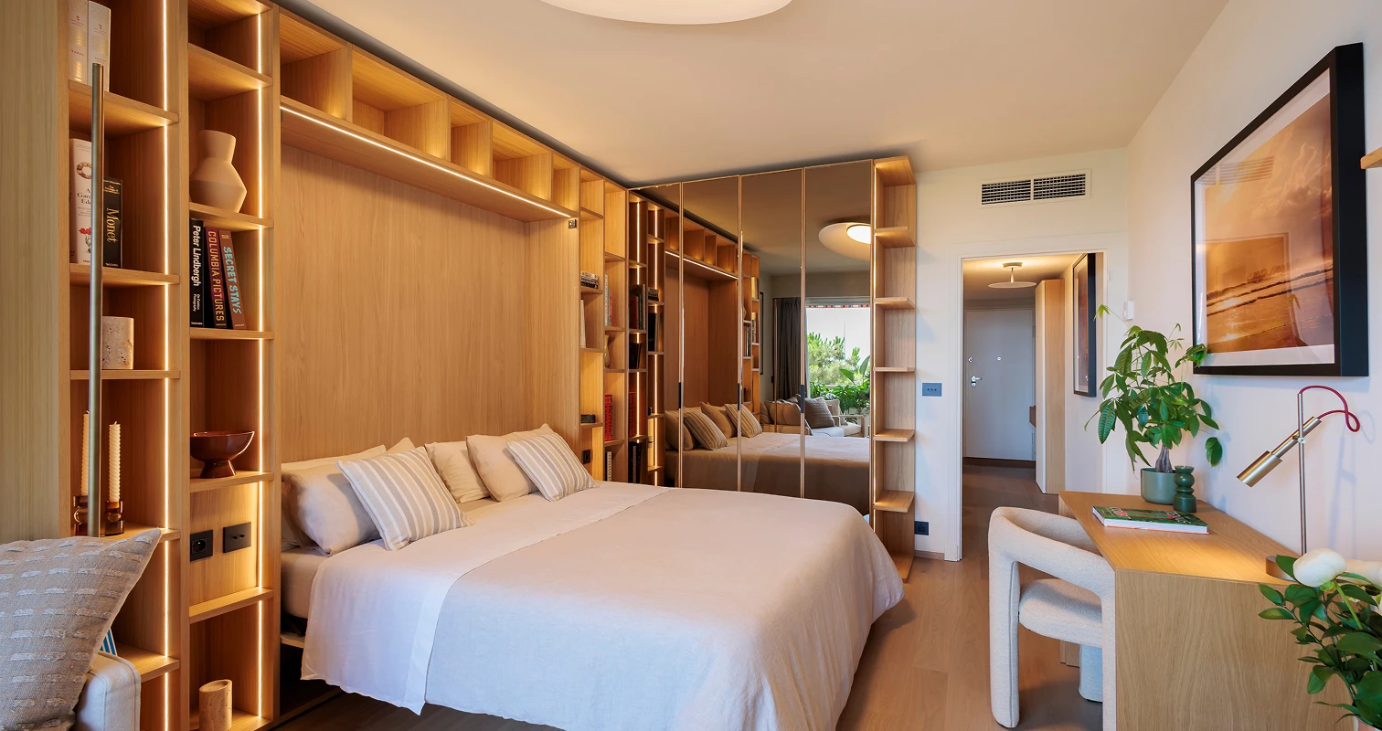 One of my favorite projects, deeply meaningful to me, involved transforming a seaside apartment in Larvotto, Monte Carlo. Every piece of custom furniture was carefully designed to reflect the client’s needs and desires, while the warm, natural color palette created an elegant and inviting ambiance. The space was meticulously designed down to the smallest detail to maximize functionality, featuring elements like a bed that folds out from the cabinetry and a table that transforms into a dining area. This thoughtful design ensured that the environment was both inviting and highly functional.