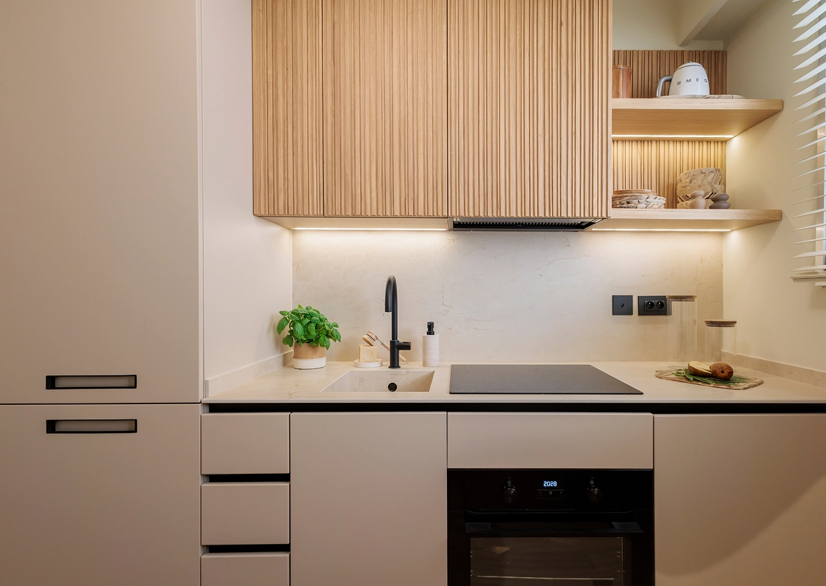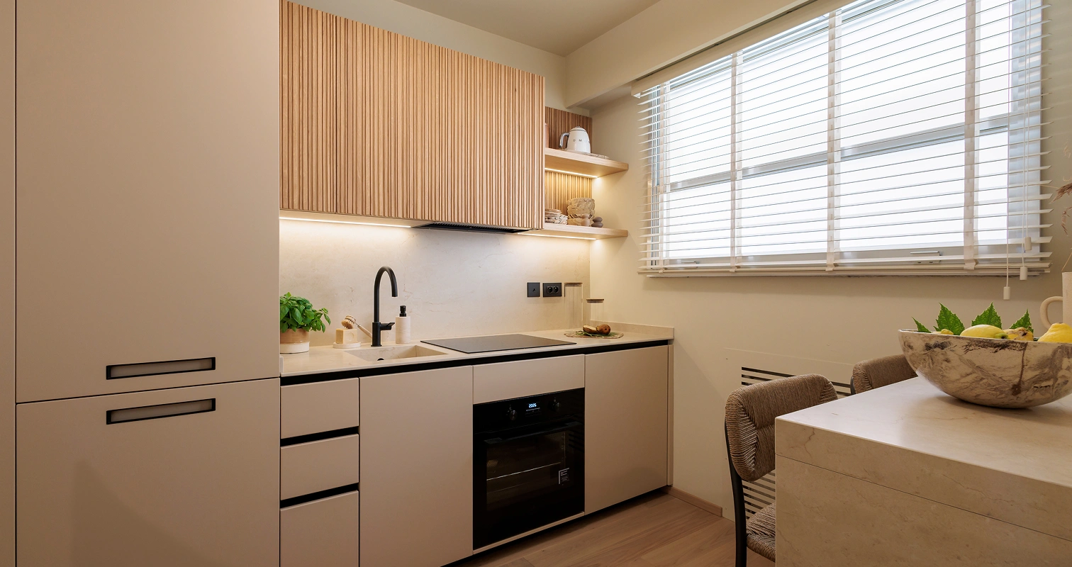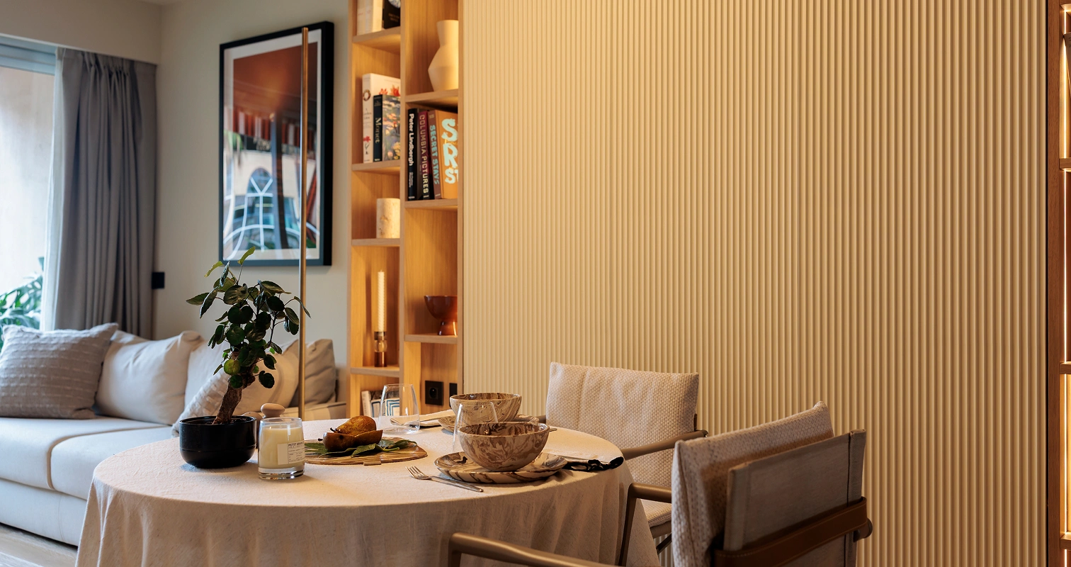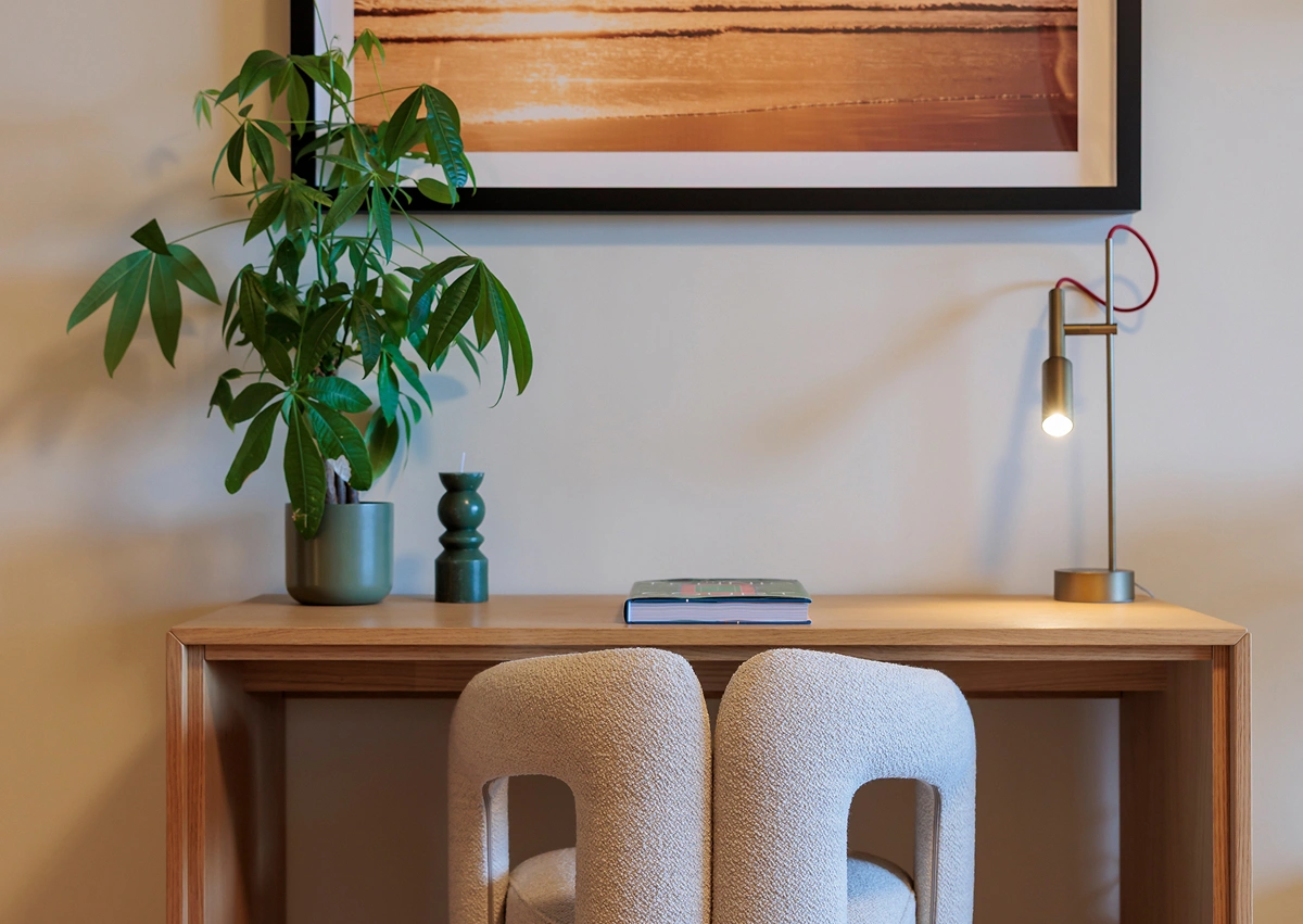 One of my favorite projects, deeply meaningful to me, involved transforming a seaside apartment in Larvotto, Monte Carlo. Every piece of custom furniture was carefully designed to reflect the client’s needs and desires, while the warm, natural color palette created an elegant and inviting ambiance. The space was meticulously designed down to the smallest detail to maximize functionality, featuring elements like a bed that folds out from the cabinetry and a table that transforms into a dining area. This thoughtful design ensured that the environment was both inviting and highly functional.